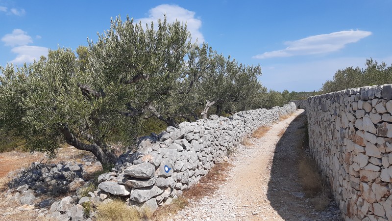 Je chemine toute la journée entre les oliviers : au sud, les criques de Brač et de l’île de Solta ; au nord, une vue époustouflante sur toute la chaîne des Alpes dinariques et… Split, déjà !