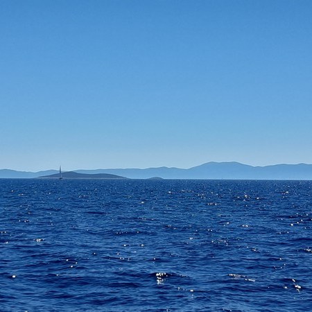 Une journée très tranquille, au moteur sur une mer d’huile. Un joli point de vue au niveau du goulet de Mali Losinj, comportant de beaux mouillages.