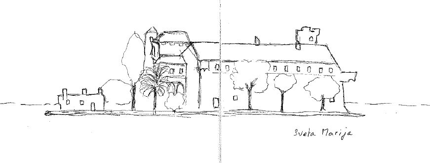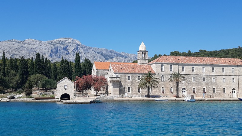 Nous arrivons en milieu d’après-midi à notre mouillage du jour, tout près de l’île de Korčula, à savoir l’un des lieux les plus extraordinaires de Croatie : le monastère de Badija, avec son arrière-plan d’ifs sombres et de montagne aride sur laquelle souffle la bora, vent puissant de nord-est.