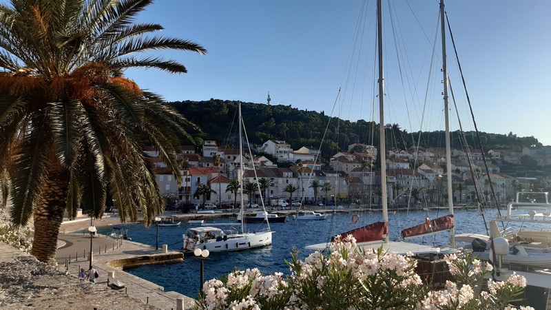En arrivant devant la ville de Hvar, nous faisons demi-tour car le port est plein à craquer. De plus, l’ambiance « Saint-Tropez » de cette petite ville médiévale ne nous convainc pas de rester.