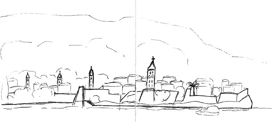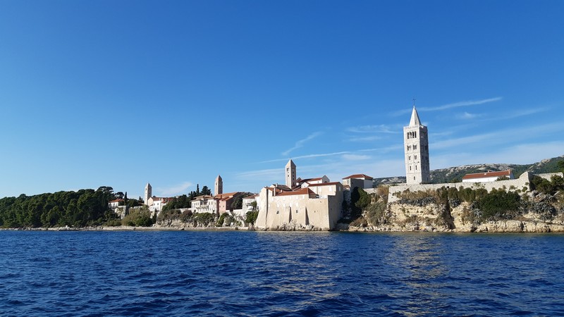 L’arrivée sur Rab est de toute beauté : les quatre clochers en enfilade, les murailles, les palmiers, les montagnes.