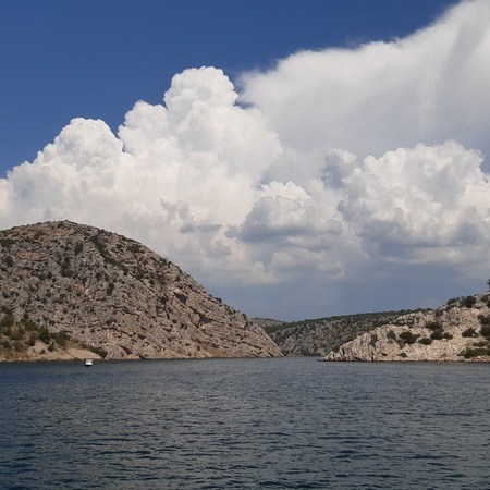 Il s’agit aujourd’hui d’une étape en rivière : nous quittons l’Adriatique et franchissons l’estuaire de la Krka avec, en ligne de mire, les chutes d’eau spectaculaires qui se situent en amont de la rivière, aux environs de Skradin.