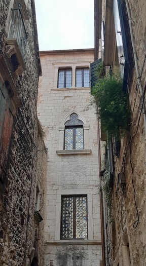 Afin de regagner un peu d’espace et de tranquillité, je pars seule visiter Trogir. Je me perds dans son dédale de rues blanches, ses pavements étincelants et ses clochers de dentelle, sa loggia vénitienne et sa forteresse aux tours rondes. Comme cela m’apaise !