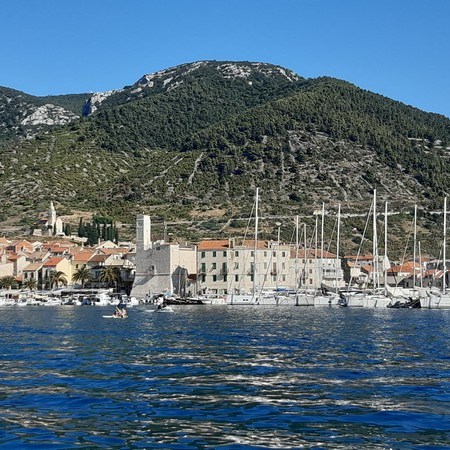 Après la dure journée de navigation d’hier et au vu du gros temps qui se profile, nous décidons de sauter une étape et de naviguer 45 milles (72 km) jusqu’à l’île de Vis. Nous prévoyons de naviguer au moteur car aujourd’hui la météo annonce une absence de vent. Nous ferons une longue escale à Vis et j’en profiterai pour faire de jolies randonnées, notamment l’ascension du mont Hum qui culmine à 580 mètres.