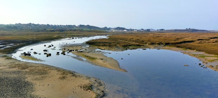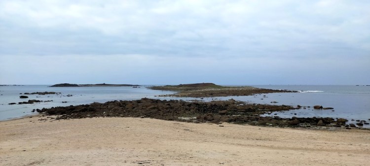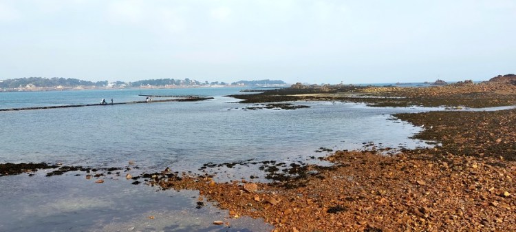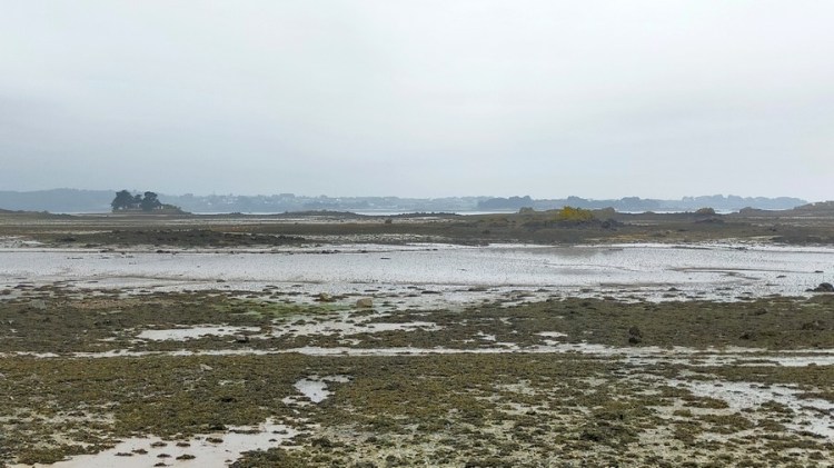 De Landrellec à l’Île Grande, nous traversons une grande baie à marée basse.