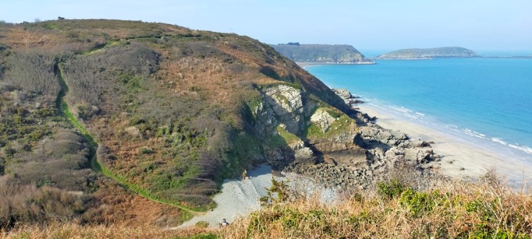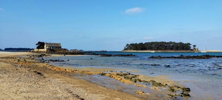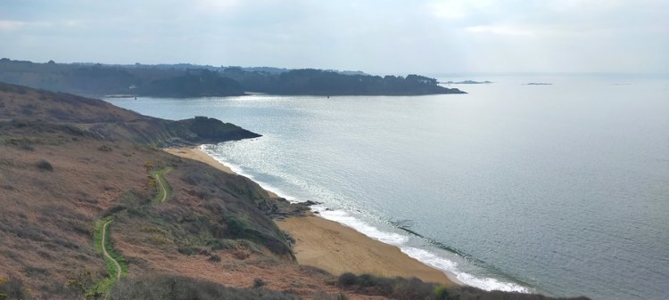 Puis nous suivons le sentier du littoral qui passe notamment par la Grève blanche, au sable si blanc qu’il luit comme de la neige. Les paysages du jour sont archétypaux de la Bretagne, pas forcément spectaculaires mais jolis, apaisants et avec juste ce qu’il faut d’équilibre entre une nature sauvage et des plages touristiques.