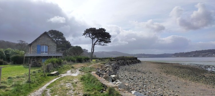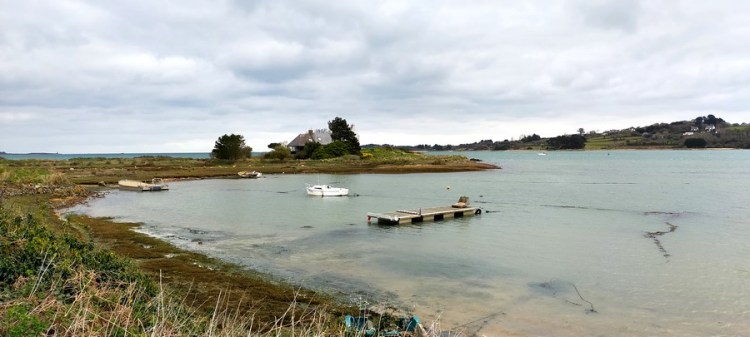 Lors de cette étape, nous traversons aussi quelques hameaux de l’intérieur des terres, tout en pierres du pays breton, typiques de la Bretagne maraîchaire, si attachante. J’apprécie l’ambiance des estuaires bretons, douce et paisible, avec des airs de cottage anglais.