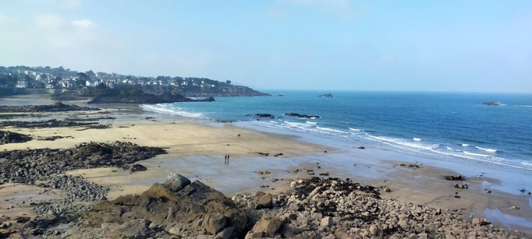 À marée basse, il est possible de traverser presque toute la baie de Perros-Guirec à pied, en coupant par les plages. L’arrivée à Perros-Guirec est agréable, avec l’île Tomé en toile de fond.