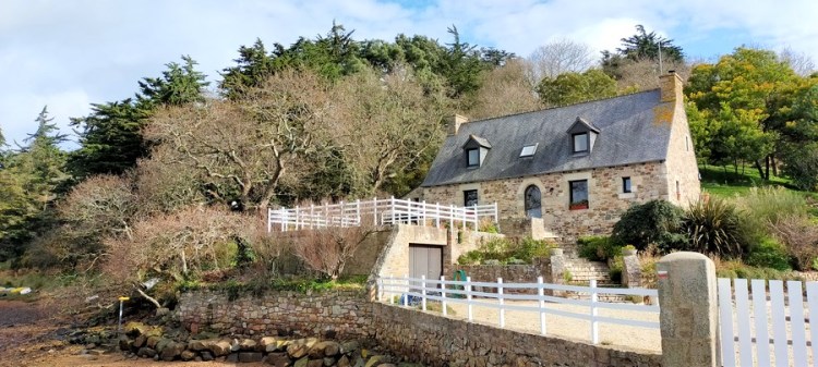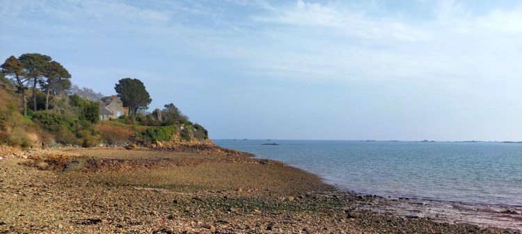 Un peu plus loin sur le sentier, le hameau de Kerroc’h nous charme avec ses vieilles bâtisses en pierre, ses jardins fleuris et son calvaire sculpté du XVIIIe siècle. À marée haute, des dizaines de rochers ornent la baie de Paimpol, magnifique.