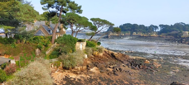 À partir de Trévou-Tréguignec, c’est le retour à la civilisation. On retrouve la propension de l’urbanisme balnéaire à dénaturer le paysage au moyen d’un bâti franchement laid. Heureusement, le littoral reste intéressant : de beaux îlots, de longues ceintures de rochers et quelques jolies maisons.