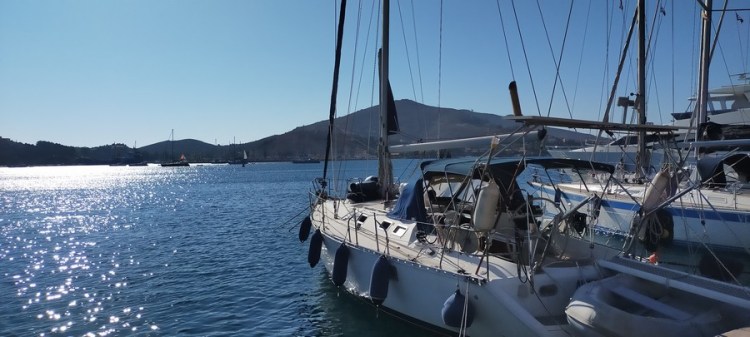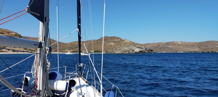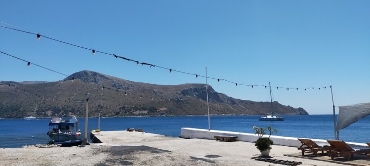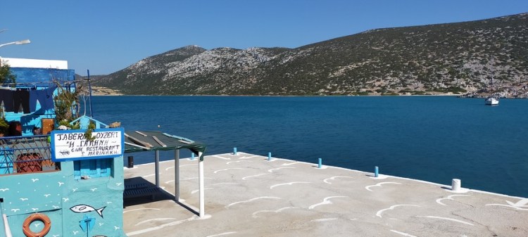Le mouillage est idyllique. Un décor de western bordé d’une eau turquoise. Les clochettes des chèvres trottant librement sur la colline, quelques maisons dans leur jus, quelques barques, un scooter toutes les deux heures sur l’unique route empierrée du paysage.
