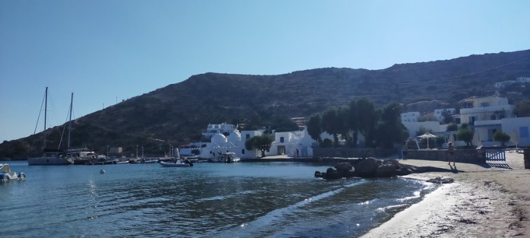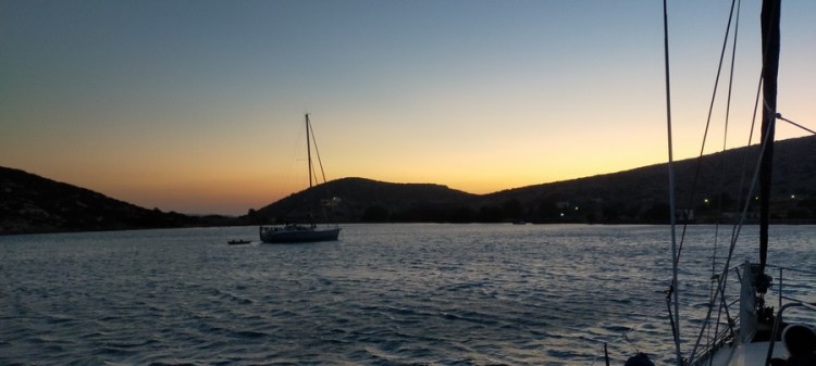 Nous dépassons Amorgos et mouillons dans les petites Cyclades, devant Naxos, sur l’île de Schinoussa. Un joli mouillage, agréable pour la baignade, mais un peu « rouleur » (ça roule la nuit !).