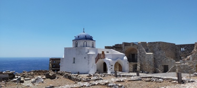 Nous visitons le château et la Chora, seules dans ce décor de rêve à l’heure où les Grecs restent chez eux. Puis nous déjeunons en terrasse au-dessus du port.