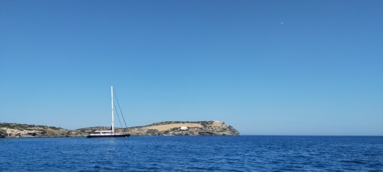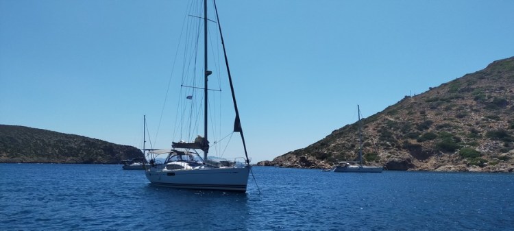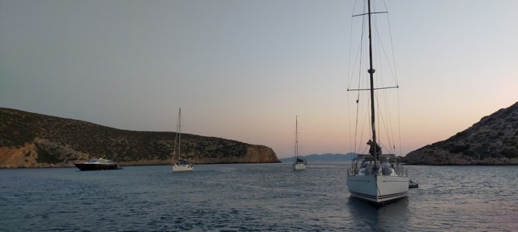Aux alentours de 17 heures, nous jetons l’ancre dans une anse bien abritée de l’île d’Astypalea, très éloignée des autres îles grecques.