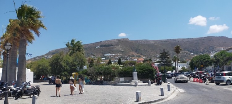 Après avoir fait les courses, nous dînons au restaurant Aroma : la cuisine est grecque mais préparée (avec amour) par Caroline, une française installée à Paros. Un festin de saveurs, avec en arrière-plan le plus gros caoutchouc des Cyclades !