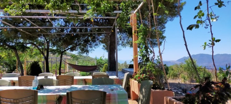 Je repars en sens inverse et rejoins Vincent juste en face d’Alcyon, à la taverne de chez Maria, un restaurant/lieu de vie comme on n’en fait plus : l’arrière-grand-mère assise toute la journée dans un rocking chair, la grand-mère en cuisine, la petite-fille qui écrit le menu sur une ardoise, le linge suspendu en terrasse et les prix défiant toute concurrence.
