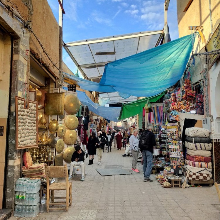 Ce matin, à l’heure touristique (vers 11 heures), je traverse la Médina par les grands axes. Je me sens déjà plus à l’aise. Passées les 48 premières heures, je prends mes repères et n’appréhende plus le contact déconcertant des habitants. C’est une autre manière de vivre, de rechercher en permanence le contact, dans un désir collectif. Tout en restant vigilante, je profite davantage de mes promenades.