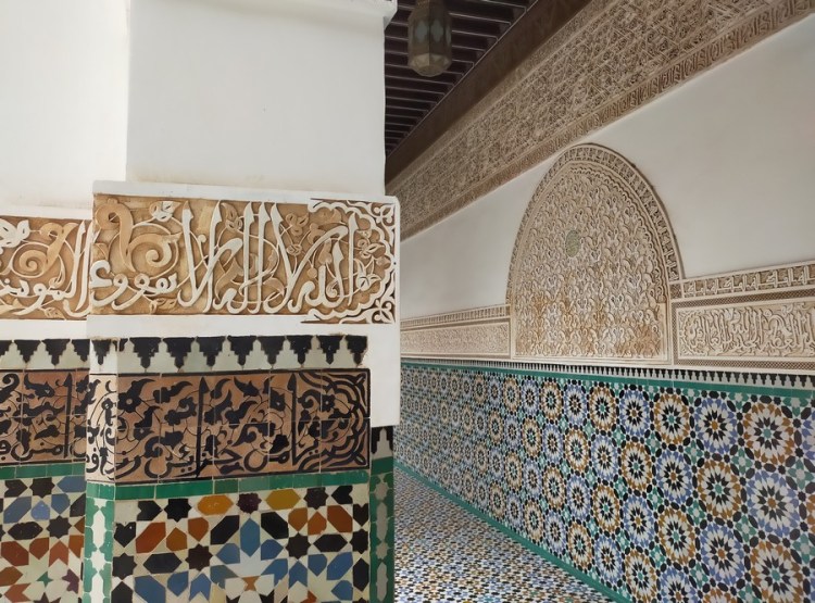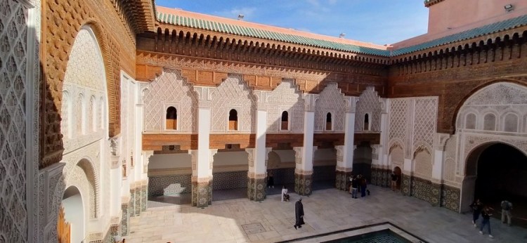 Première merveille : la Medersa Ben Youssef, chef-d’œuvre de l’art saadien. Les Saadiens sont une dynastie de sultans des XVIe-XVIIe siècles ayant décidé d’établir leur capitale à Marrakech. La Medersa était le lieu d’enseignement le plus important de la ville.