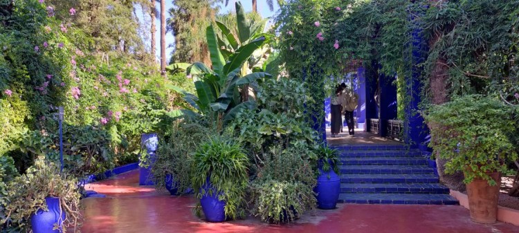 J’admire de nombreuses espèces rares de cactées et expérimente la jouissance colorée produite par le bleu Majorelle, ce bleu roi très intense. À certains endroits de ce jardin, on se croirait au Mexique !