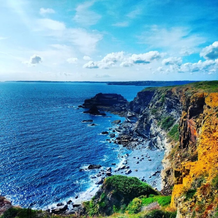 Parties sous un ciel lourd, nous voyons le ciel se dégager progressivement et le panorama avec : la merveilleuse côte sauvage de Lost Marc’h au cap de la Chèvre, en passant par l’immense plage de la Palue, très prisée des surfeurs.