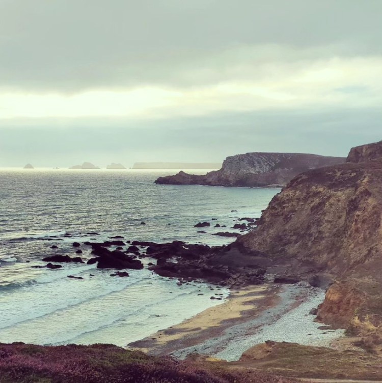 La suite de l’étape est un enchantement, de falaise en falaise et de plage en plage, jusqu’à l’immense plage de Telgruc sur Mer. J’ai le cœur léger, le sac aussi (car je n’ai plus de vivres et presque plus d’eau), et je me sens d’humeur joyeuse !