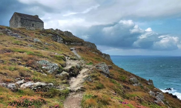 La géologie a été presque absente pendant six jours, la roche étant noyée sous les arbres. Et là, tout à coup, c’est un véritable festival de falaises, de plissements, de rochers… La fête de la pierre pour mon plus grand bonheur ! Et que dire de la lande ? Une féerique mosaïque de couleurs. Les ajoncs jaunes, la bruyère violette et les arméries rouge carmin dans un écrin vert. J’ai l’impression de marcher au bord d’un arc-en-ciel !
