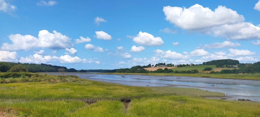 Ici, les bras de mer forment des méandres couverts d’alluvions, comme souvent en Bretagne nord. Cela me rappelle les Abers voisins.