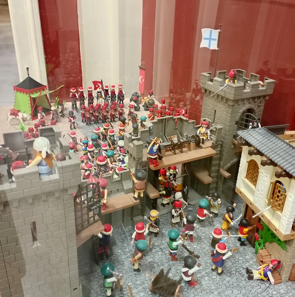 (Ci-dessous, une représentation de la guerre d’indépendance contre les Ottomans… avec des Playmobils. Très réaliste.)