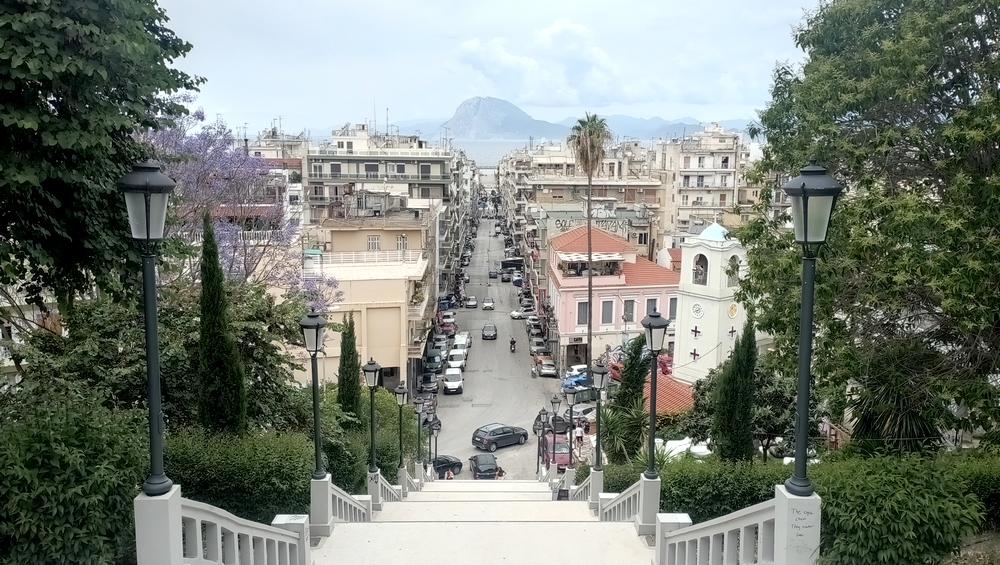 La vue depuis le grand escalier de Patras est « la » carte postale de la ville.